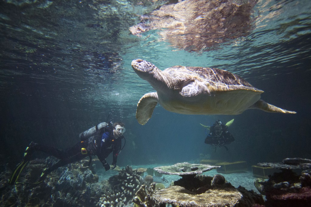 In just one day, you can encounter a 500-pound green sea turtle and hundreds of darting fish in an Indo-Pacific reef; explore the colorful sights and sounds of a sunny, tropical rain forest; descend to the depths of shark territory; and experience animal feedings and presentations.